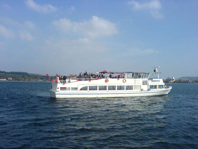 An Board der MS Bodensee werden wir mit CMS Schifffahrt eine entspannte Fahrt über den Bodensee genießen und Wissenswertes über den Bodensee und seine Sehenswürdigkeiten direkt durch unseren Kapitän erfahren!